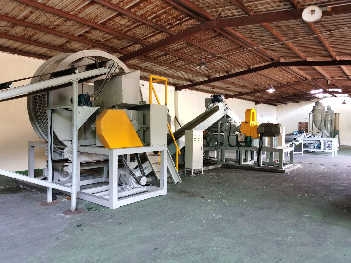 1.拉絲機:從輪胎圈拉出鋼絲以便輪胎可以在下一道工序直接由撕碎機進行撕碎。